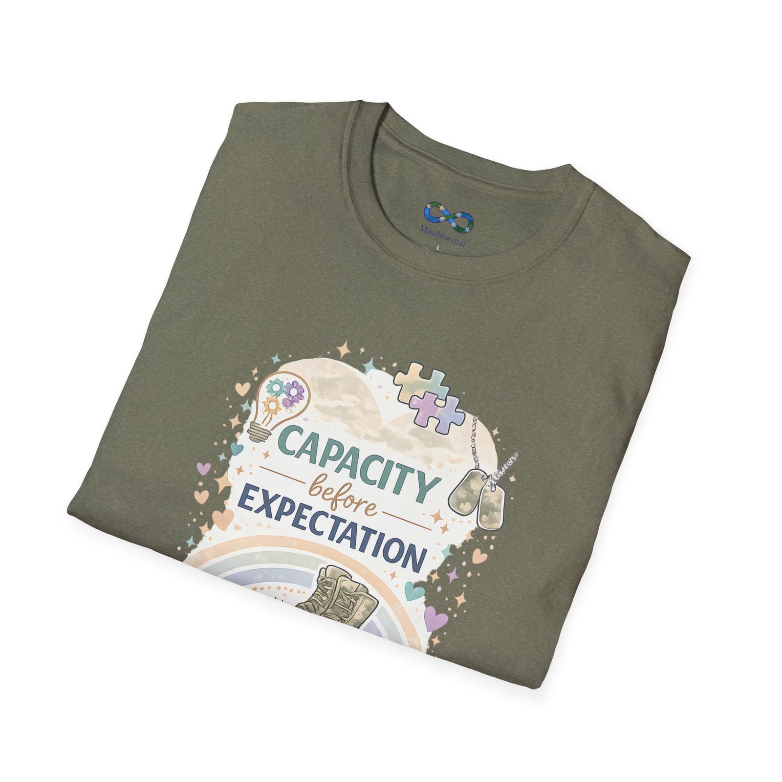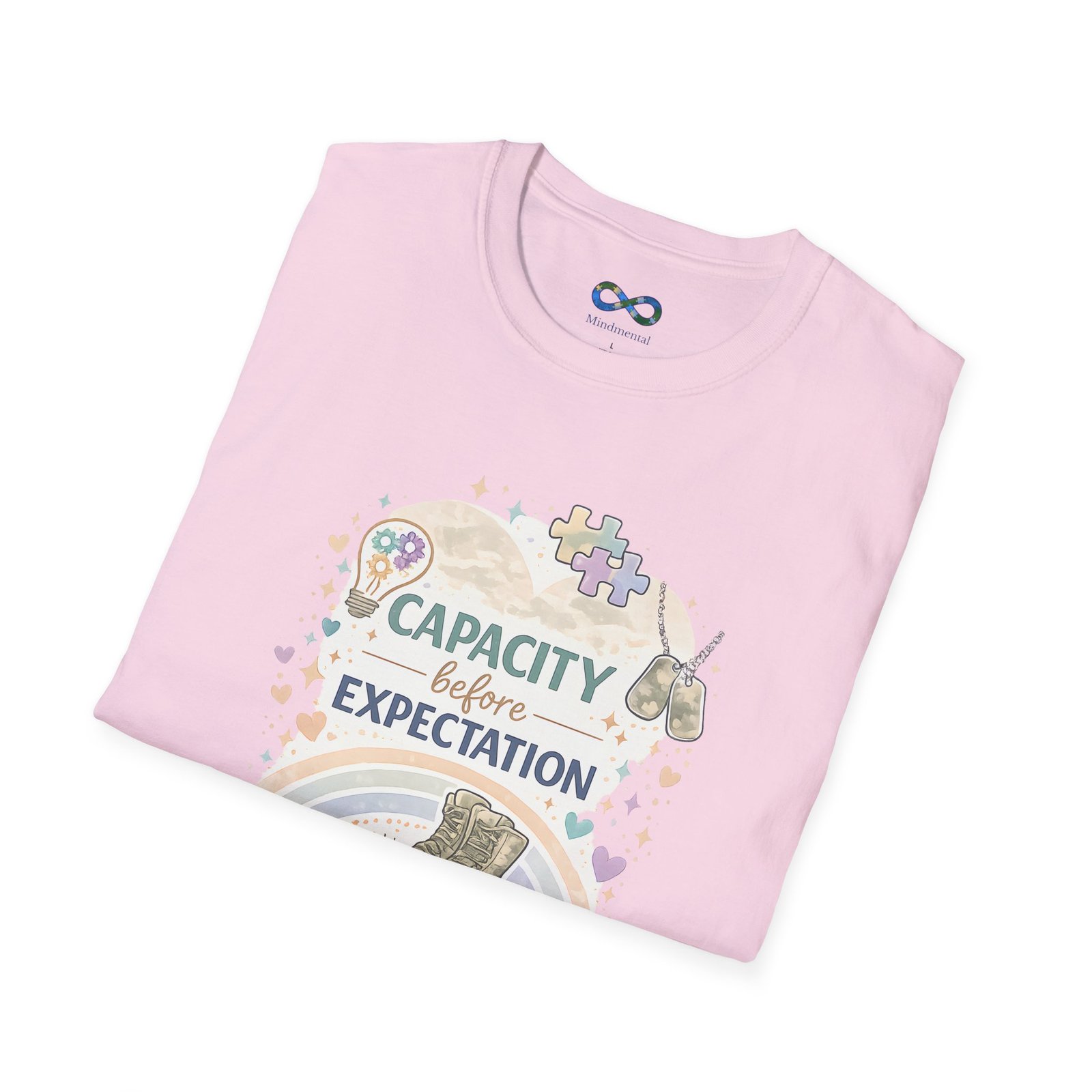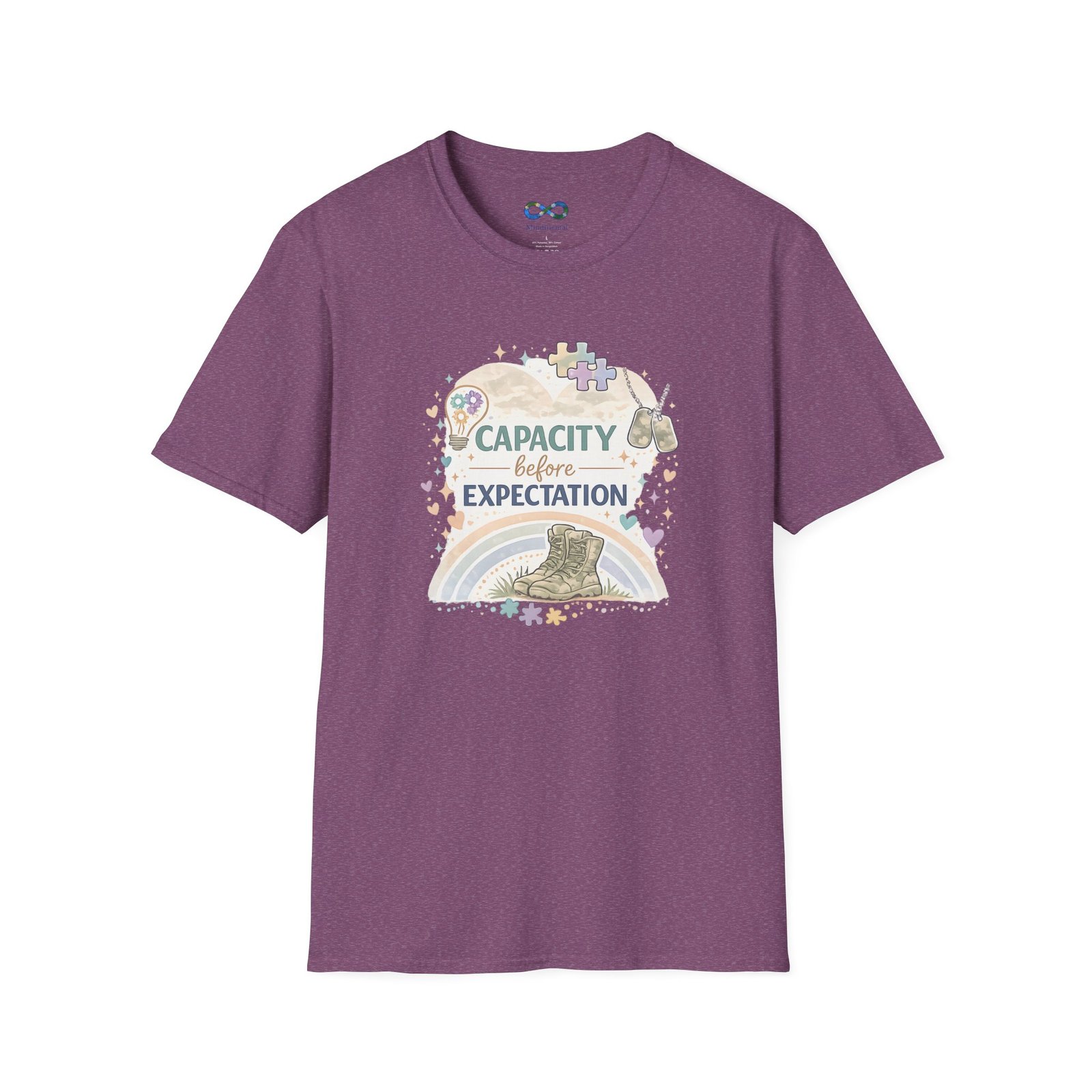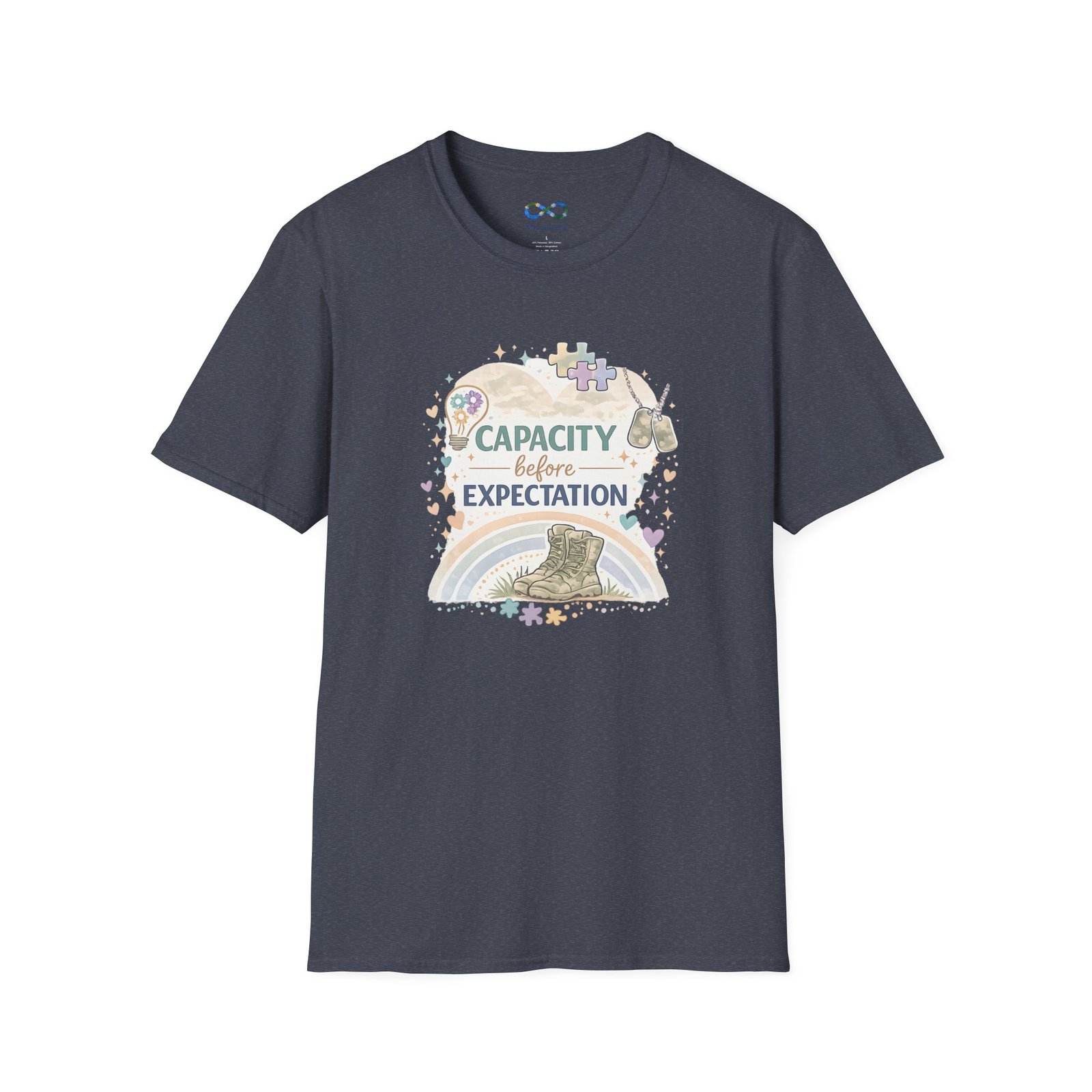 This beautifully designed tee features the empowering message “Capacity Over Expectation” surrounded by delicate wildflowers, perfect for anyone who needs a gentle reminder to honor their limits while still growing.