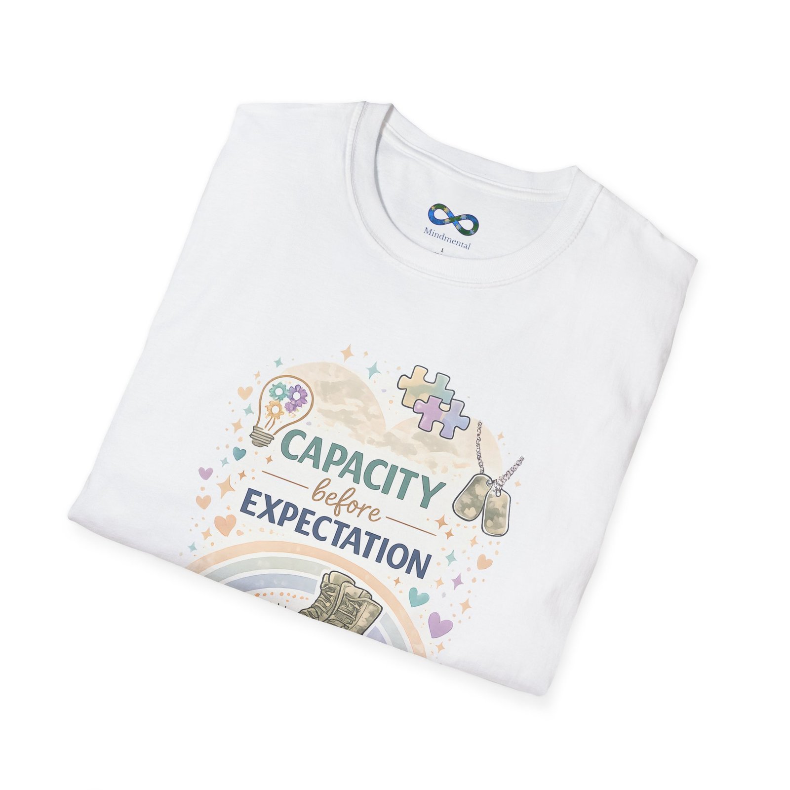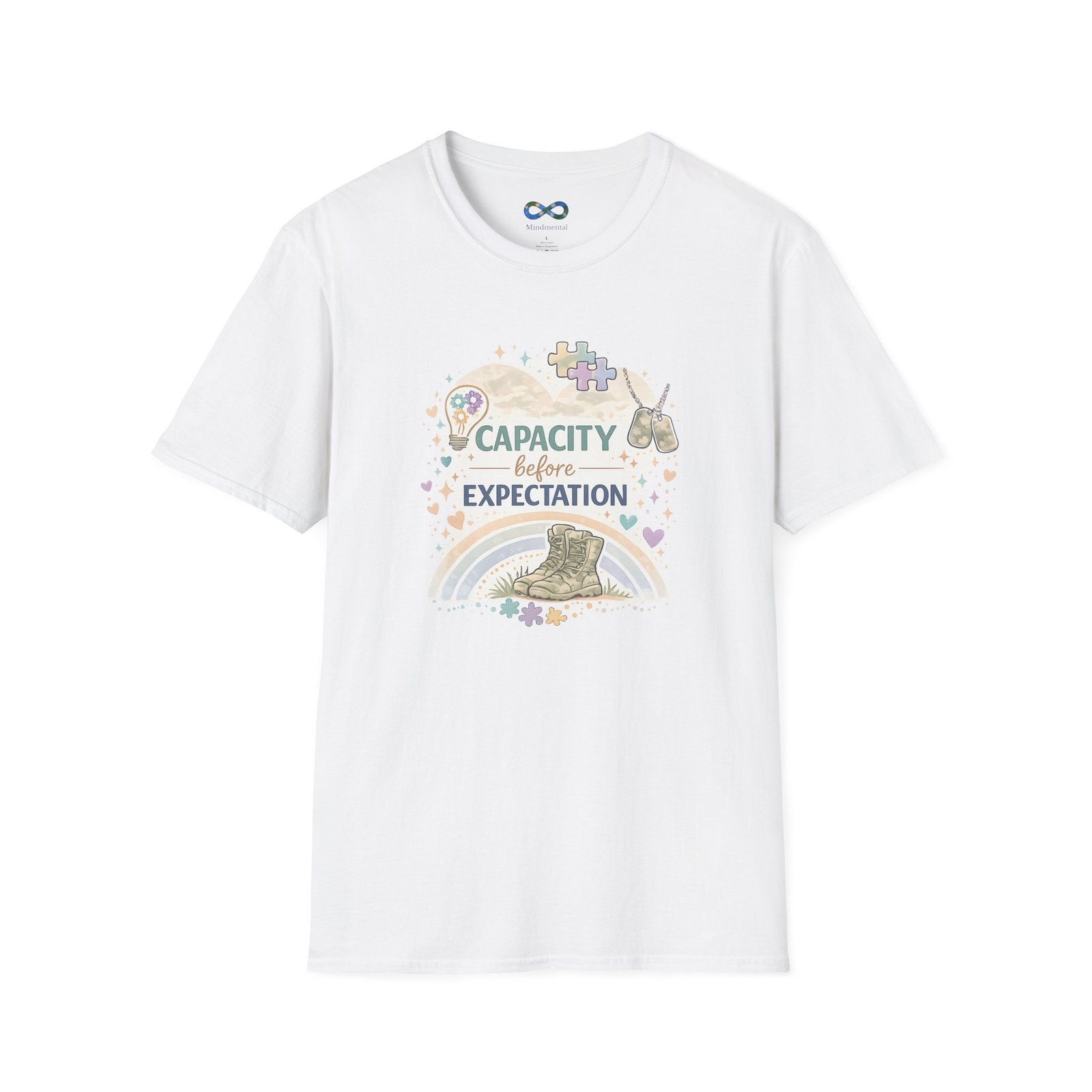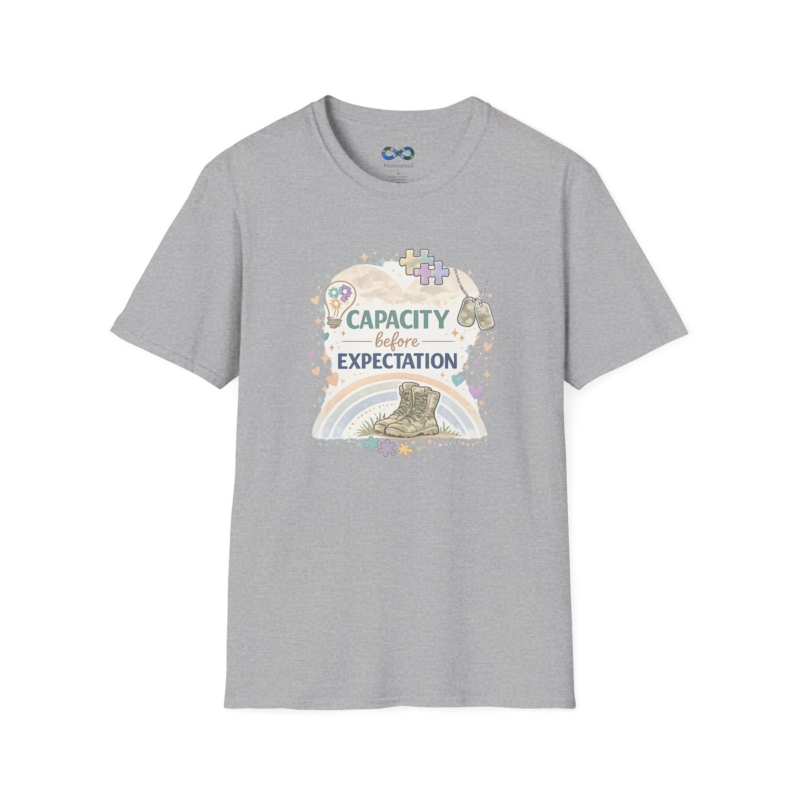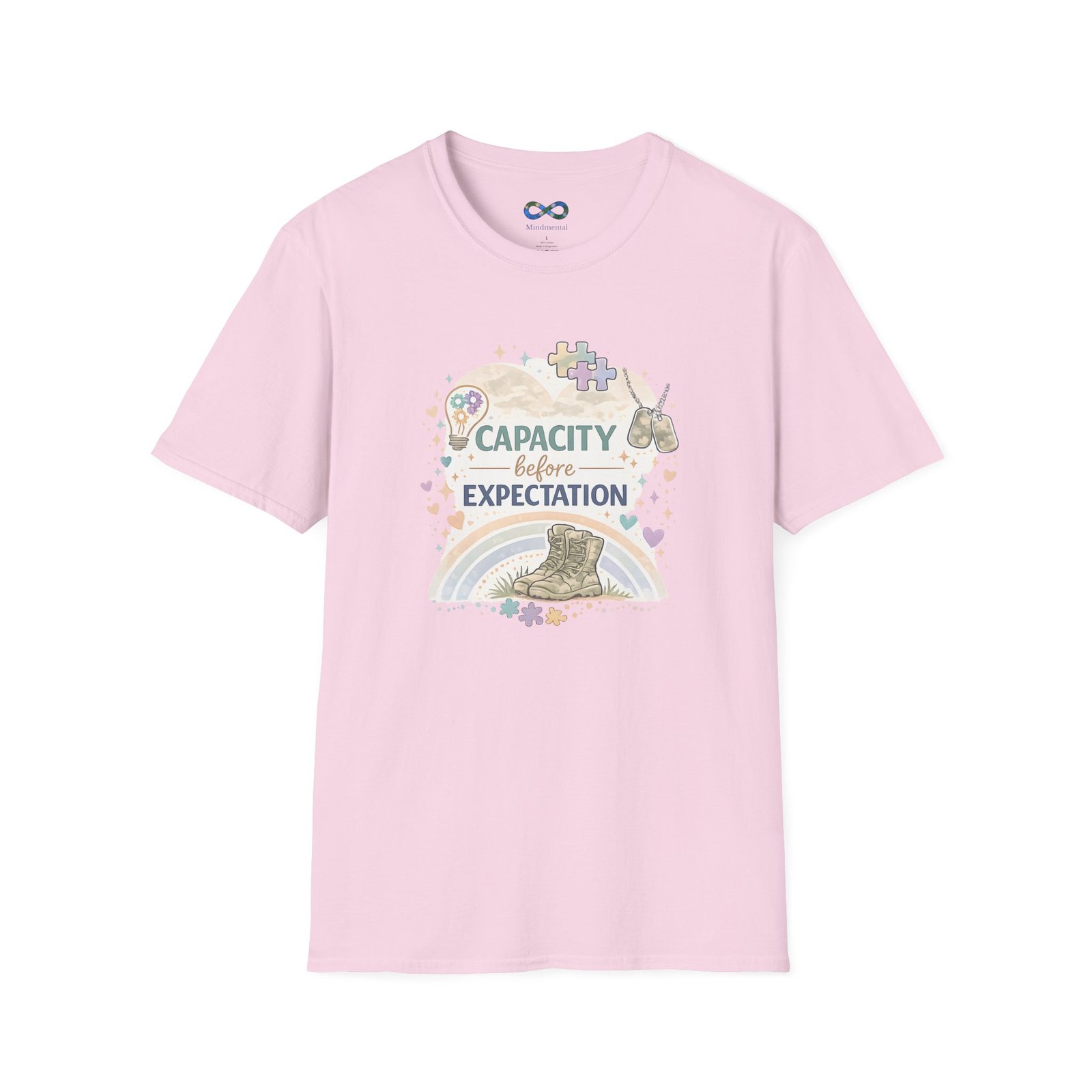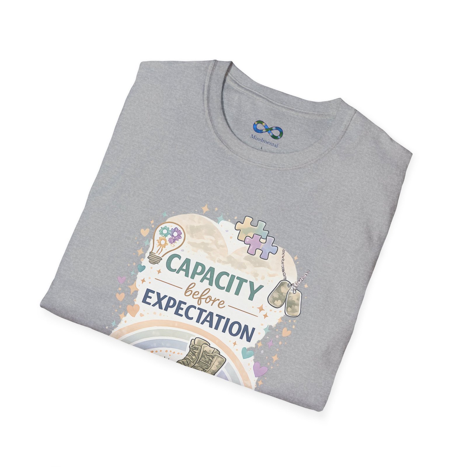 This beautifully designed tee features the empowering message “Capacity Over Expectation” surrounded by delicate wildflowers, perfect for anyone who needs a gentle reminder to honor their limits while still growing.
